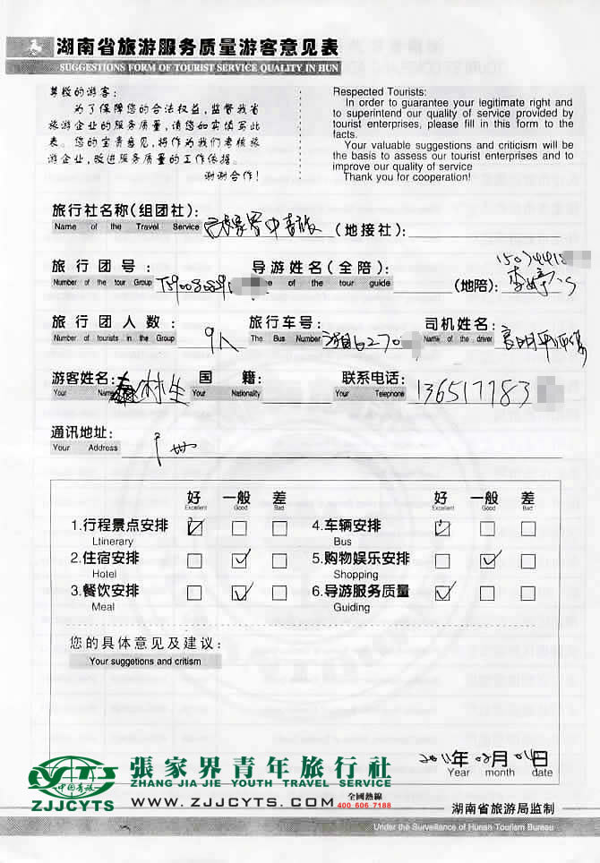 廣東廣州市“林先生”與張家界青旅旅游顧問——客服經(jīng)理“張德建”先生在7月15取得聯(lián)系,并與其林先生就合理選擇的選擇行程、旅游過(guò)程的具體要求、服務(wù)范圍,做了多次在線溝通和電話溝通,經(jīng)過(guò)細(xì)致的商磋,最終在07月23日確立并簽訂《國(guó)內(nèi)旅游組團(tuán)接待合同》,正式確立由我社負(fù)責(zé)全程接待安排;林先生親率貴賓一行9人,于07月30日下午抵達(dá)長(zhǎng)沙,并安安排導(dǎo)游在長(zhǎng)沙高鐵南站接站,搭乘我司提供商務(wù)豐田車,于當(dāng)日下午三點(diǎn)許抵達(dá)張家界,次日便開始了為期3天行程的走進(jìn)張家界之旅。 08月04日下午送團(tuán)長(zhǎng)沙后,貴賓搭乘高鐵返程回廣州