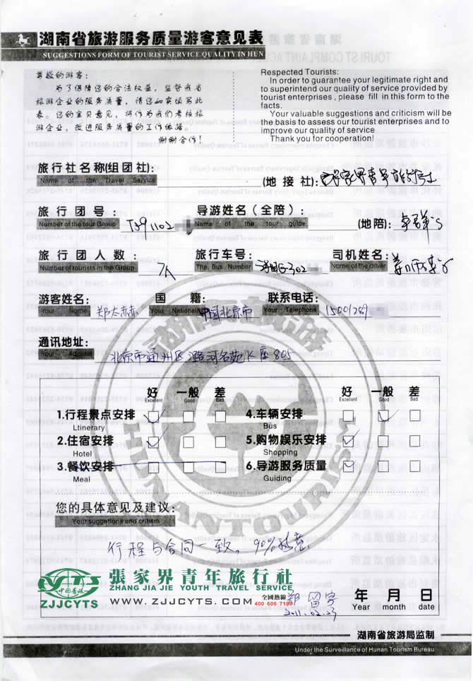 再次感謝鄭先生選擇張家界青年旅行社,以及您對(duì)張家界青旅的信任與支持。我們會(huì)繼續(xù)努力,做好旅游接待工作。期待還能為您服務(wù),祝您全家幸福,生活愉快!--李芳瓊留言