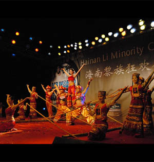 竹竿舞是海南黎族人民特有的舞蹈,它具有自然歡快,節(jié)奏猛烈的特點(diǎn)。清脆的竹竿聲所演繹出來(lái)的不僅是悅耳的旋律,更是舞者們激昂,年輕的心。在他們的帶動(dòng)下,舞臺(tái)就這么地活起來(lái)了。